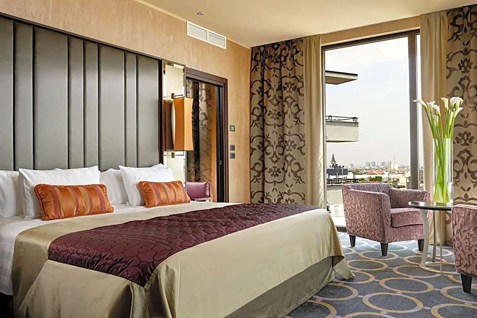 Boasting a balcony overlooking Milan Cathedral, this air-conditioned suite is composed of a main bedroom and separate living area with a sofa bed. The private bathroom includes a spa bath, soft bathrobes and free toiletries.